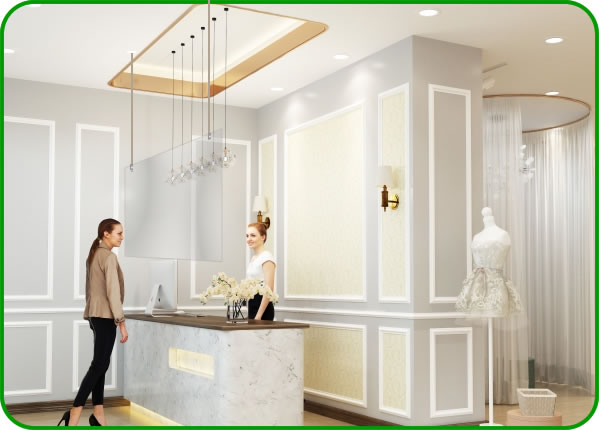景観を損なう事のないワイヤーを使った飛沫感染防止対策。宝石店やブライダルショップなどにぴったりです。
