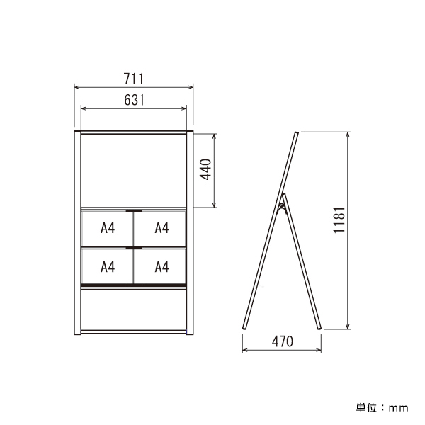 ○付属のクリアケースにメディアをセットして使います。○マーカー面はマグネットが使えるので、手書きの案内とA2までのポスター掲示が可能。○上質感のある木目の支柱が案内を一層引き立てます。