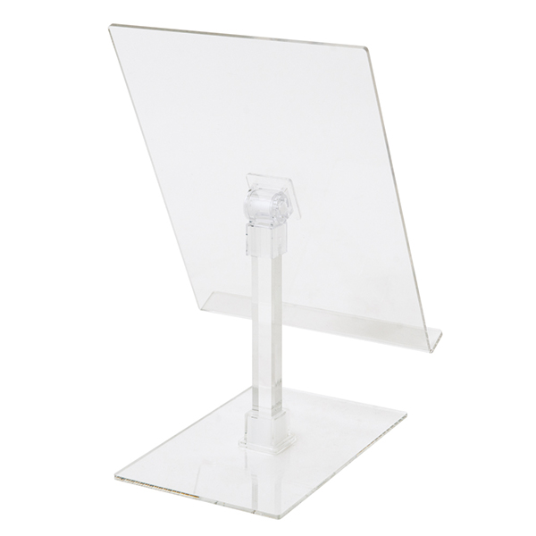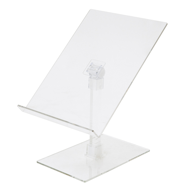 見せたい方向に可動する展示面を持った新しいタイプの「商品展示台」です。