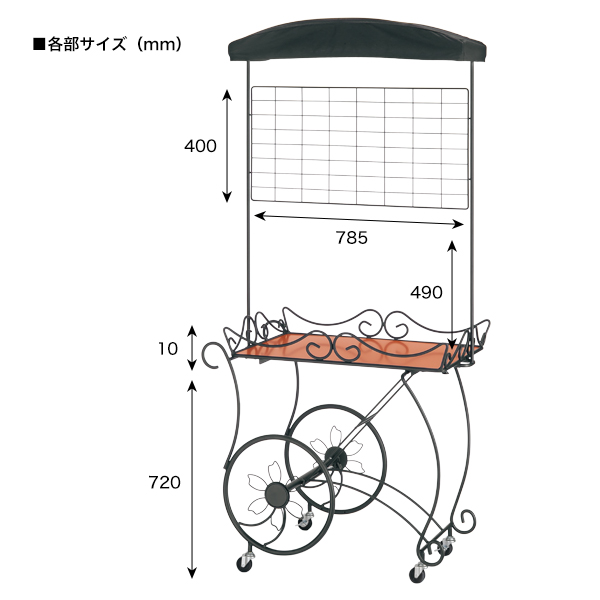 | キャスター | 樹脂製単輪キャスターφ50mm:ストッパー付・無×各2個、ボルト径:3/8w |