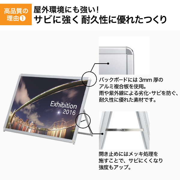 高品質とお求めやすい価格でロングセラーのA型看板。こだわり抜いたスタンド看板があなたのお店の集客をサポートします。