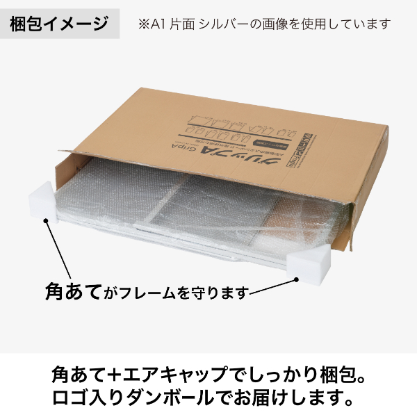 発送の際は角あて+エアキャップで丁寧に梱包。ロゴ入りダンボールでお届けします。