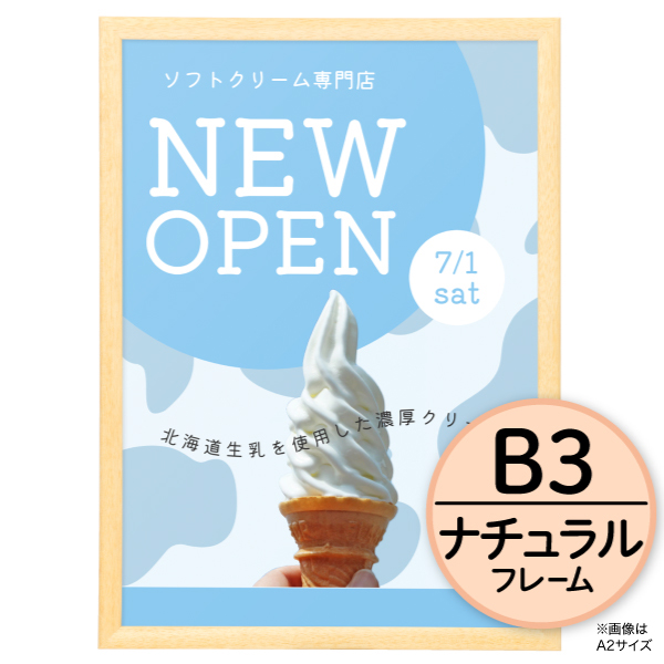 カフェ、雑貨店、書店などに。木製フレームのナチュラル感を活かしたポスター掲示ができます。