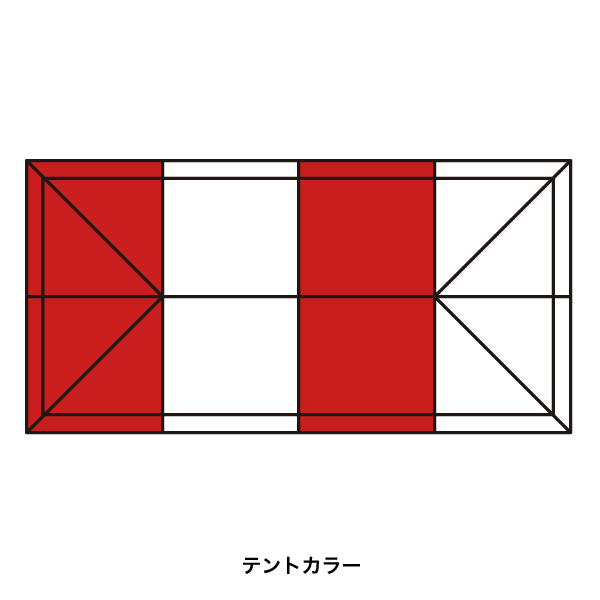 | 素材 | 支柱:スチール白粉体塗装(上部:35mm角、下部:28mm角、厚み1.2mm)、サイドクロスフレーム:アルミ白粉体塗装(八角形、厚み1.8mm)、接合部:強化プラスチック、天幕生地:ポリエステル100%・ポリウレタン塗布(耐水圧790m/m、防水防炎加工、UVカット加工紫外線遮蔽率99.9%以上) |