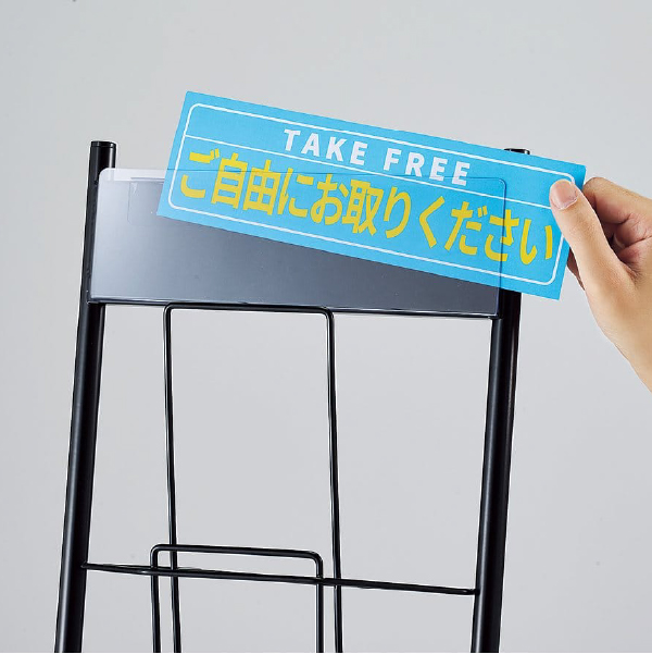 スマートカタログスタンド専用のカード差しです。スタンド上部に掲示物を差し込めます。訴求力UPにおすすめ。