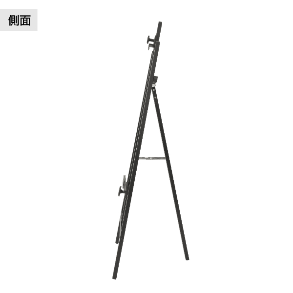 軽くて丈夫な定番型アルミイーゼル。シンプルなデザインでどんなポスターフレームともなじみます。 設置したいパネルに合わせて、押さえパーツ・受けパーツの位置を調整し、上下から挟み込んでしっかりと固定できます。B1タテなどの高さ1180mmまで・厚さ30mmまでのパネルを置くことができ、看板やウェルカムボードのスタンドとして活躍します。屋外に置く場合は、安定感をアップさせる別売りのキューブブロックを使うのがおすすめ。厚さ15mmまでの薄めのパネルには別途付属のパーツも使用できます。折りたたみ可能で収納時も省スペース。大型でも組み立て不要ですぐに使えます。