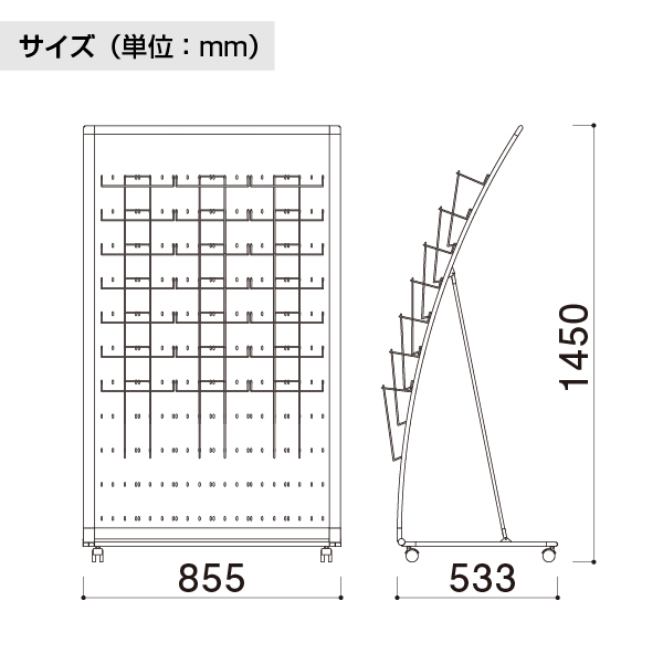 カタログスタンド PRX-073 A4判3列7段 折りたたみ式 キャスター付 W855×D533×H1450mm