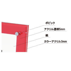 | 素材 | 面板:前/アクリル透明5mm、後/カラーアクリル2mm |