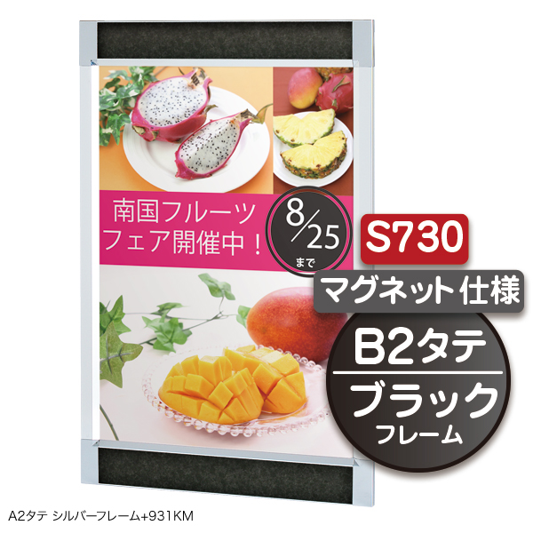 プリンパS730 マグ A2タテ ブラック 上下70mm幅フレーム マグネット付 前面開閉式