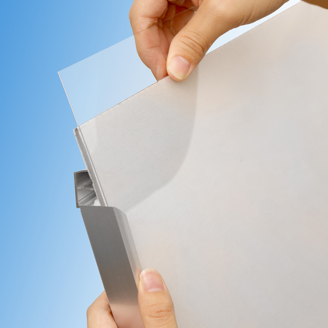 | 素材 | 背板:紙ダンボール(表面コート)、透明板:ペット樹脂t0.6mm、フレーム:アルミニウム |