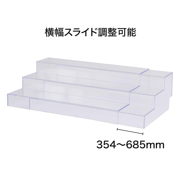 ■三段型のひな段で奥の商品までよく見え、段差が付いているから陳列しやすい。