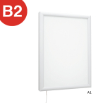 駅構内や複合施設に。クリップ金具付きなのでポスターの交換、取り付けも簡単便利。LED中照度2000LXで縦開閉式の照明パネルです。