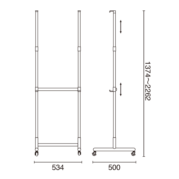 | 本体サイズ | W534×D500×H1374〜2262mm |