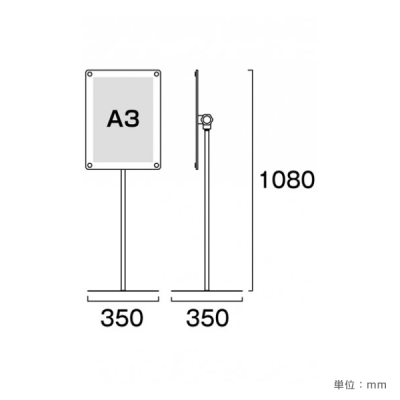 | 素材 | ベース:ガルバニュウム鋼板t1.6mm、ポール:ステンレス(H790mm φ19mm)、面板:アルミ複合板(白)t3mm+アクリル透明板t2mm、化粧ビス:アルミ アルマイト仕上(シルバー) |