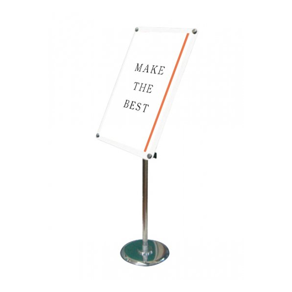 | 素材 | ポール:ステンレス#400 上段φ27.2mm・下段φ30mm、ベース:M脚スチール製 表面コートステンレス、化粧ビス:アルミ アルマイト仕上 φ20mm、面板:アルミ複合板(白)t3mm+アクリル透明t 2mm |