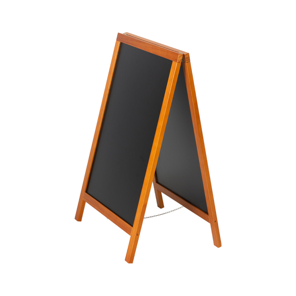 カフェ・レストラン大国ヨーロッパで生まれたA型ボード。本場で培われた存在感のあるデザインは、人々の目を奪います。マーカー・チョークが使用可能。表面はひっかき傷に強い塗装を施しています。開き止にチェーンが付属しています。
