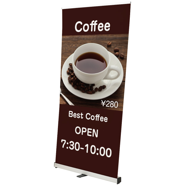 ロールスクリーンタイプなのでご使用時にバナーを引き上げて支持パイプに取り付けるだけでカンタン設置。使用後も、自動巻き取りで収納もラクラクです。