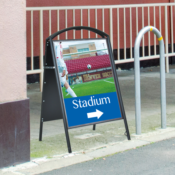ずっしりと安定感のあるスチール製のポスタースタンド。