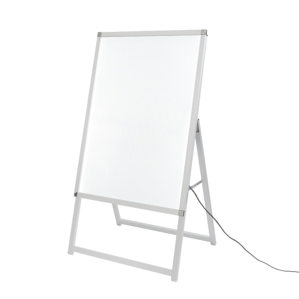 屋内専用使仕様でベストプライスを実現。明るく目立つLEDパネル付きスタンド。 抜群の存在感が入店のきっかけを作る、LED仕様のA型看板です。ポスターをパッと明るく色鮮やかに表示させ、自然に視線を集めます。 四方開閉式フレームでポスター交換も簡単。折りたためるのでコンパクトに片付けられます。 本体背面にはアダプターを収納できる専用ポケット付き。付属のフックを使えばアダプターのコードを吊り下げられ、線が絡むのを防ぎ見た目もスッキリとさせてくれます。 ショッピングモールやレストラン街・デパ地下では、他店と差をつける販促アイテムとして、屋内イベントや館内施設ではキャンペーンや会場案内の誘導表示としても活躍します。また明るく華やかな高級感を演出できるので、百貨店やアパレルショップにもおすすめです。 ひときわ目を引くLED看板で、設置したその日から集客アップを目指せます。