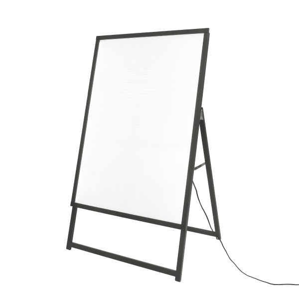 屋内専用使仕様でベストプライスを実現。明るく目立つLEDパネル付きスタンド。 抜群の存在感が入店のきっかけを作る、LED仕様のA型看板です。ポスターをパッと明るく色鮮やかに表示させ、自然に視線を集めます。 四方開閉式フレームでポスター交換も簡単。折りたためるのでコンパクトに片付けられます。 本体背面にはアダプターを収納できる専用ポケット付き。付属のフックを使えばアダプターのコードを吊り下げられ、線が絡むのを防ぎ見た目もスッキリとさせてくれます。 ショッピングモールやレストラン街・デパ地下では、他店と差をつける販促アイテムとして、屋内イベントや館内施設ではキャンペーンや会場案内の誘導表示としても活躍します。また明るく華やかな高級感を演出できるので、百貨店やアパレルショップにもおすすめです。 ひときわ目を引くLED看板で、設置したその日から集客アップを目指せます。