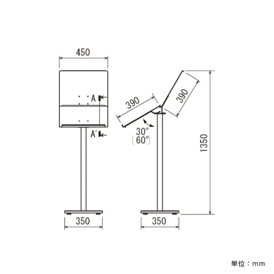 | 素材 | メニュー台・支柱・ベース:スチール塗装仕上 |