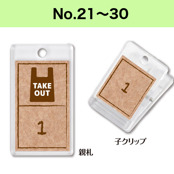 【在庫限り】テイクアウト番号札クリップタイプNo21〜30 親子札 クローク札 クロークチケット 整理券