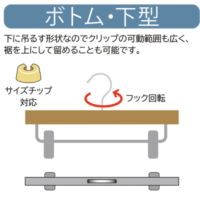 ※ボトムハンガーの写真内のサイズ表記はクリップ間の最大値です。※色移りの原因になりますので、湿った服を掛けたり、スチームアイロンのご使用はおやめください。