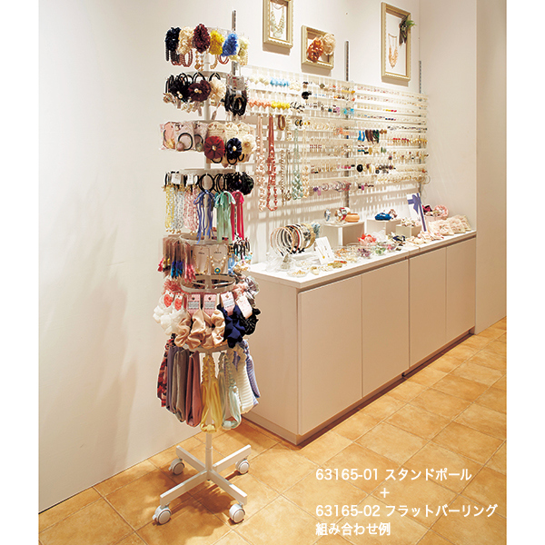 | 備考 | ○プラ双輪キャスター:直径40mm(ストッパー付き・無し×各2個)○組み合わせ商品:63165-02 アクセサリー専用回転什器フラットバーリング |