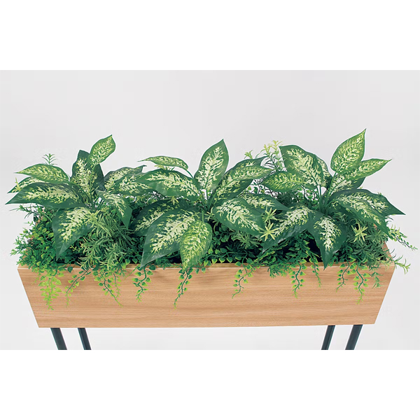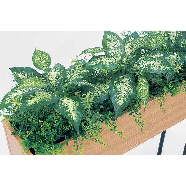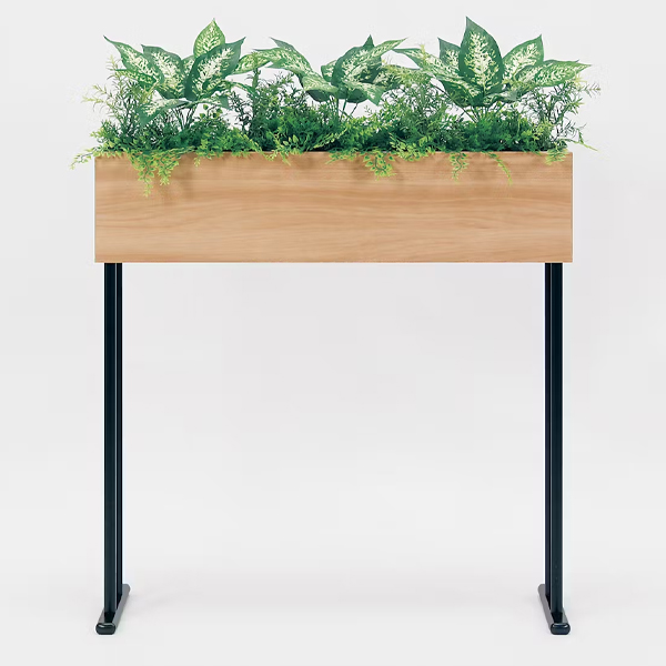 | 素材 | 本体:木質ボード木目紙貼り、脚:アルミ押出材ブラックアルマイト仕上、装飾:造花・5.5mmベニヤシート貼り・ハッポー |