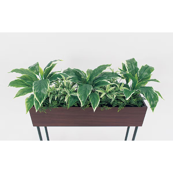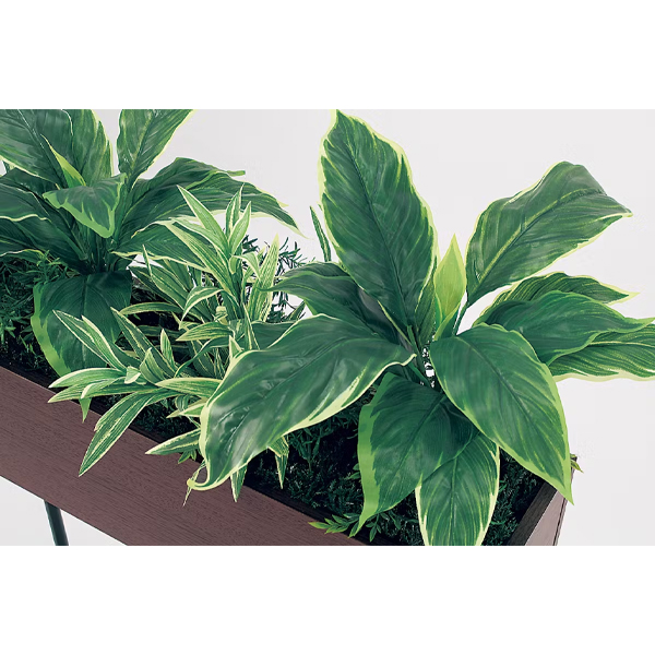 | 素材 | 本体:木質ボード木目紙貼り、脚:アルミ押出材ブラックアルマイト仕上、装飾:造花・5.5mmベニヤシート貼り・ハッポー |
