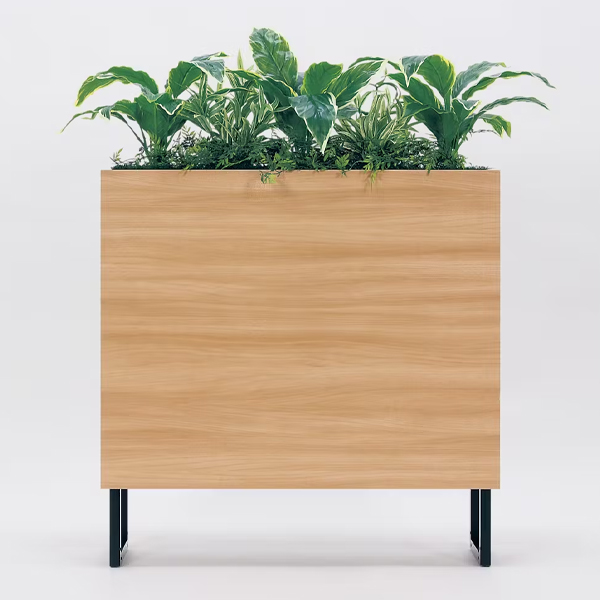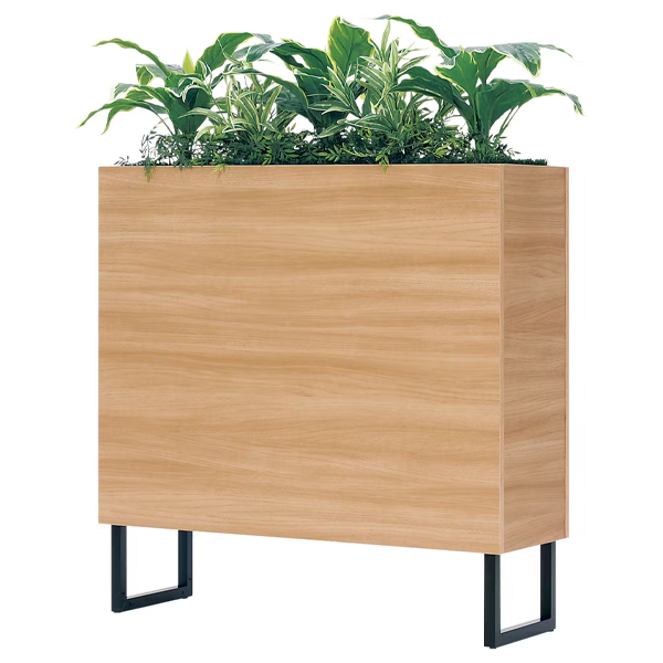 コンパクトで使いやすい汎用タイプのBOXプランター。足元まで隠せるアイアン風脚のスタイリッシュなデザインです。寄せ植え風の多彩なグリーンアレンジが空間を彩り、見る人を飽きさせません。 オフィスの間仕切りとして、コンパクトで使いやすい汎用タイプです。足元まで隠せて連接してもすっきり見えます。カジュアルなオフィスの仕切りやプチ緑化におすすめです。ちょっと仕切りたい、ちょっと区切りたい時にちょうどいいオフィス向けのパーテーション。オフィスで使い勝手のいいサイズ感とデザインが特徴です。単体でも並べても汎用的に使えます。