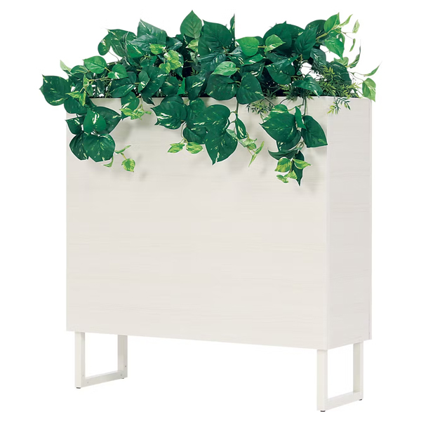 コンパクトで使いやすい汎用タイプのBOXプランター。足元まで隠せるアイアン風脚のスタイリッシュなデザインです。寄せ植え風の多彩なグリーンアレンジが空間を彩り、見る人を飽きさせません。 オフィスの間仕切りとして、コンパクトで使いやすい汎用タイプです。足元まで隠せて連接してもすっきり見えます。カジュアルなオフィスの仕切りやプチ緑化におすすめです。ちょっと仕切りたい、ちょっと区切りたい時にちょうどいいオフィス向けのパーテーション。オフィスで使い勝手のいいサイズ感とデザインが特徴です。単体でも並べても汎用的に使えます。