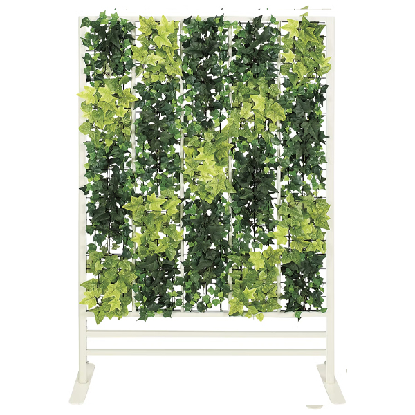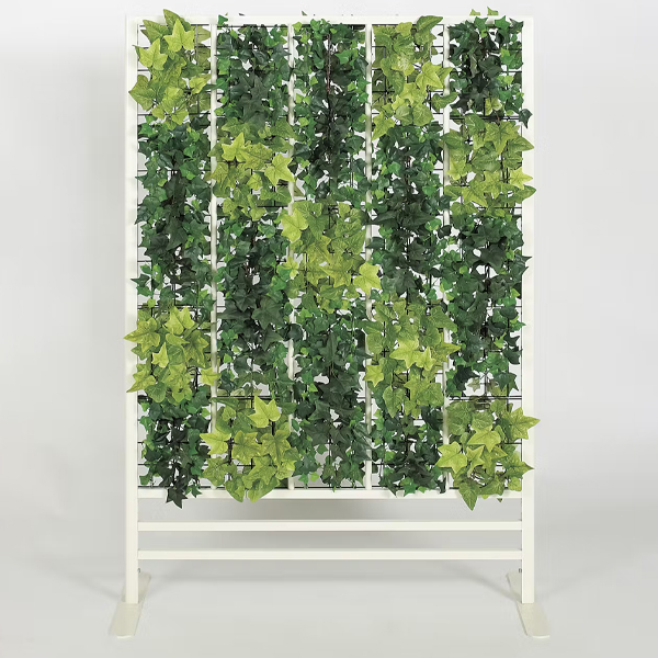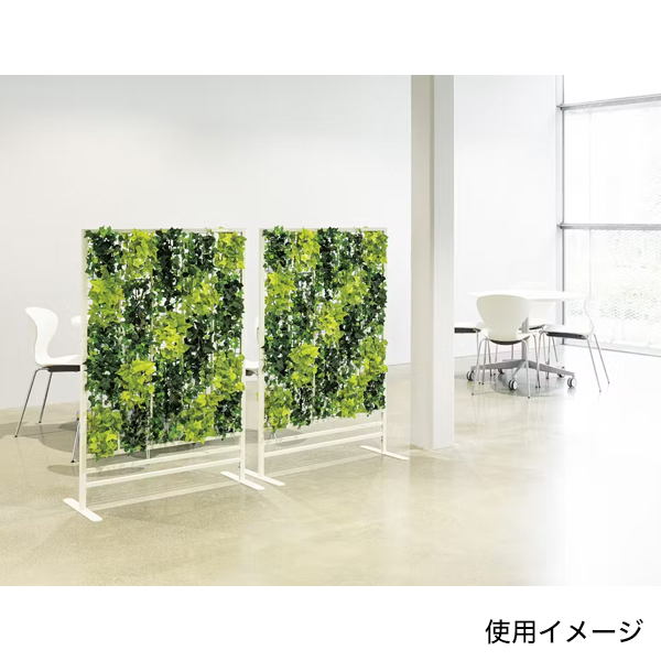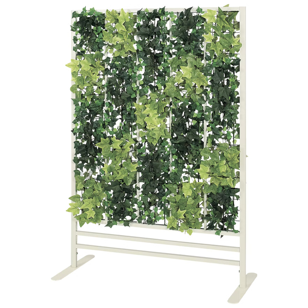 グリーンのカーテンで仕切るパネルパーテーション 高さ1300mmタイプ。全面をアイビーで覆い隠して、間仕切り効果を高めたタイプ。空間をインテリア感覚で、手軽におしゃれに間仕切りできるカジュアルなパネルパーテーションです。 適度な透け感がありつつ、高さが1600mmあるグリーンカーテンのトールタイプ。 グリーンアレンジやシルエットがスタイリッシュで、いろいろなシーンで使いやすいです。