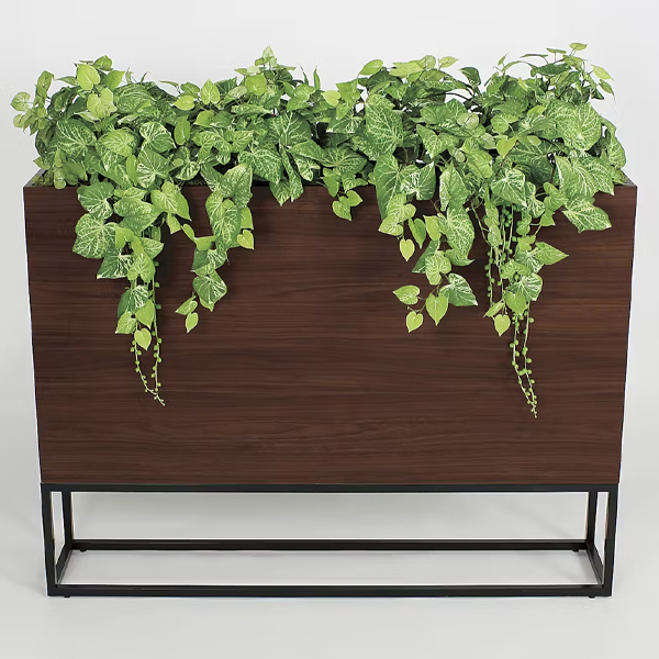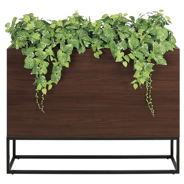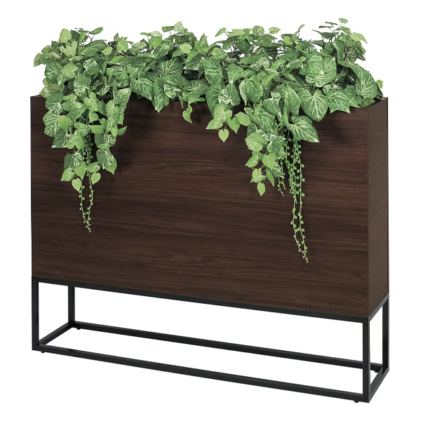 新感覚のBOXプランター、アイアン風の脚部が圧迫感なくオシャレです。 ワイド1200mm幅で連接でも設置しやすいサイズ。 飲食店、フードコート、カフェ、オフィス、施設まで使いやすいデザインです。