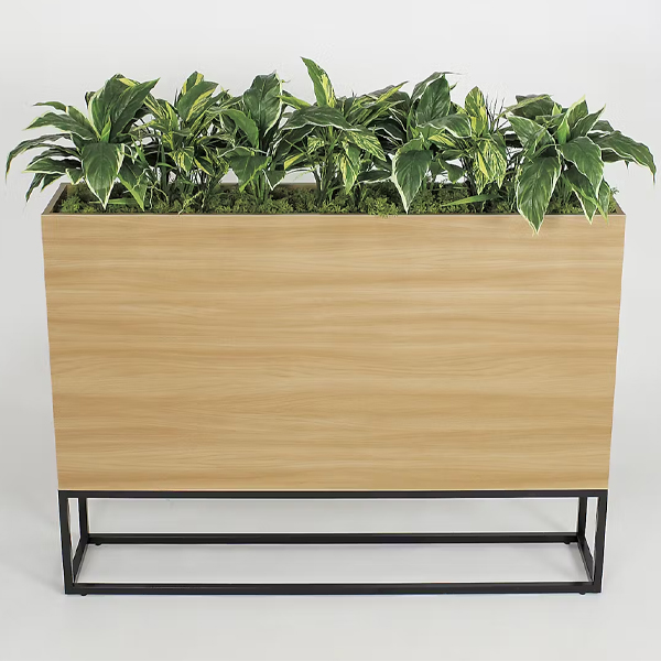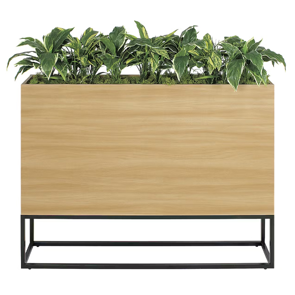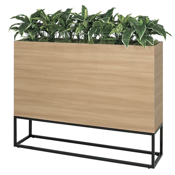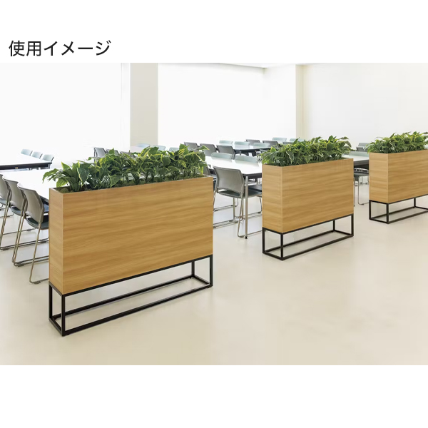 新感覚のBOXプランター、アイアン風の脚部が圧迫感なくオシャレです。 ワイド1200mm幅で連接でも設置しやすいサイズ。 飲食店、フードコート、カフェ、オフィス、施設まで使いやすいデザインです。