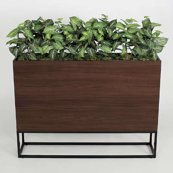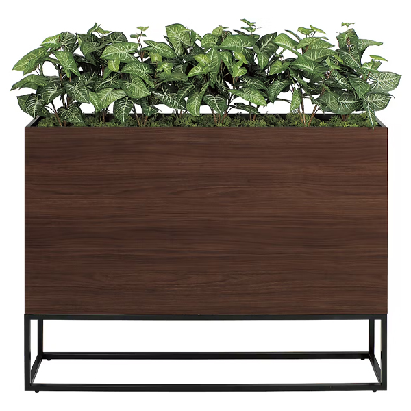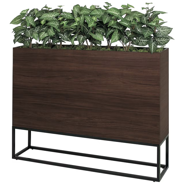 新感覚のBOXプランター、アイアン風の脚部が圧迫感なくオシャレです。 ワイド1200mm幅で連接でも設置しやすいサイズ。 飲食店、フードコート、カフェ、オフィス、施設まで使いやすいデザインです。
