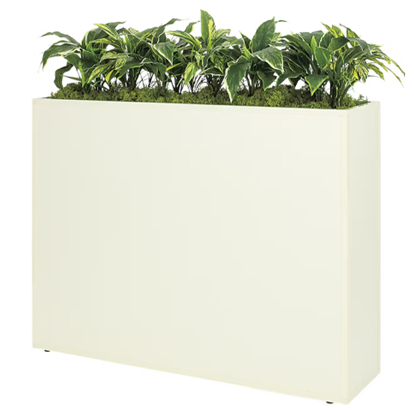 簡易型のBOXプランター。 ワイド1200mm幅のスタンダードデザインのBOXタイプ。 サイズや連接仕様など特注対応が可能なタイプ。 連接に向いていて仕切りとしても重宝します。