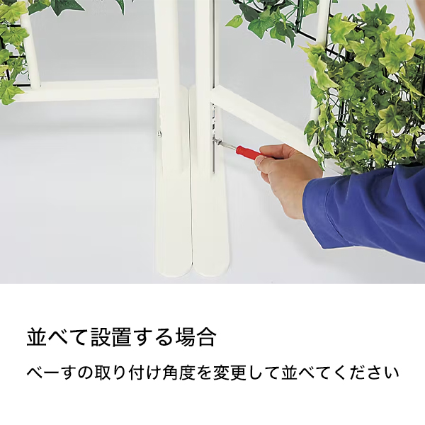 | 素材 | 本体:アルミ押出材ホワイト電着塗装仕上・アルミ押出材シルバーアルマイト仕上・スチール金網焼付塗装、脚:スチール焼付塗装、装飾:造花、組立式 |