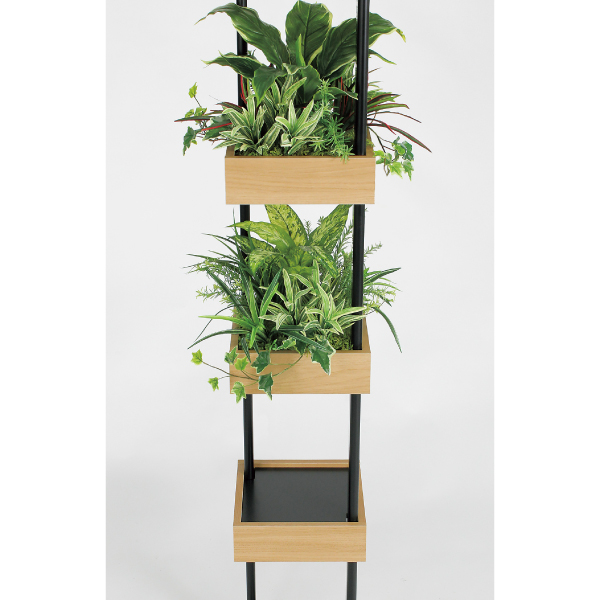 | 素材 | 本体:スチール焼付塗装・アルミ押出材ブラックアルマイト仕上げ・木質ボード木目紙貼り、装飾:造花 |