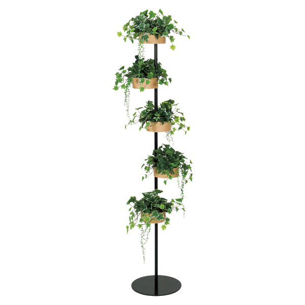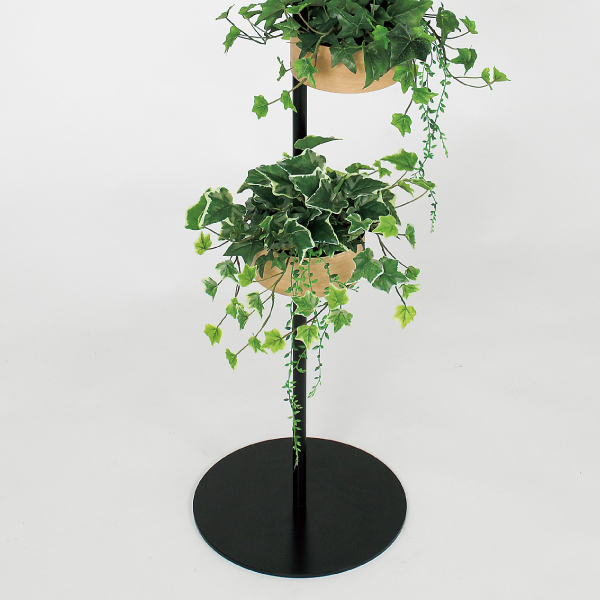 | 素材 | スタンド本体:アルミ押出材ブラックツヤ無しアルマイト仕上・スチールメッキ仕上・スチール焼付塗装、ポット:アルミ押出材木目シート貼り仕上・スチール焼付塗装、装飾:造花 |