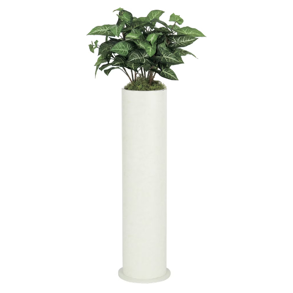 観葉植物に代わる新感覚の円筒プランターH900mm。オフィスや施設に合わせやすいアイボリーとグリーンの組み合わせ。