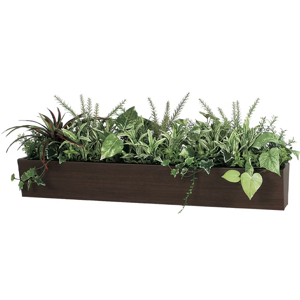 木目でインテリアに合わせやすいボックスタイプの卓上ポット。 ポットの形状は下部が細くなっているので斜め台形です。 間仕切りとして、また置くだけで卓上の演出にも効果があります。