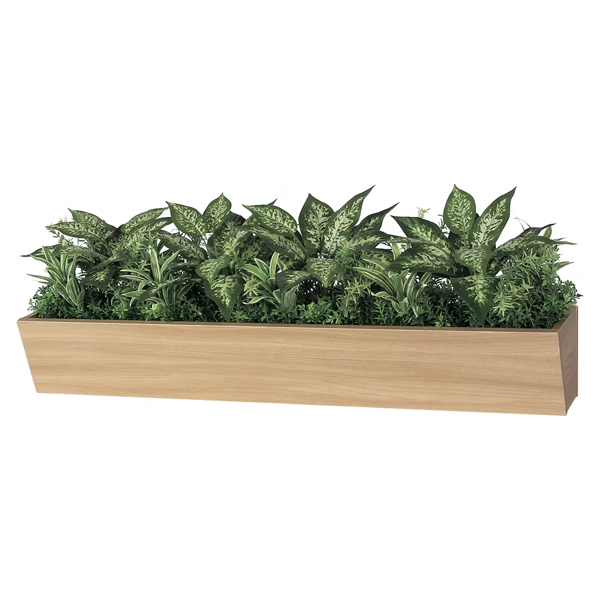 木目でインテリアに合わせやすいボックスタイプの卓上ポット。 ポットの形状は下部が細くなっているので斜め台形です。 間仕切りとして、また置くだけで卓上の演出にも効果があります。