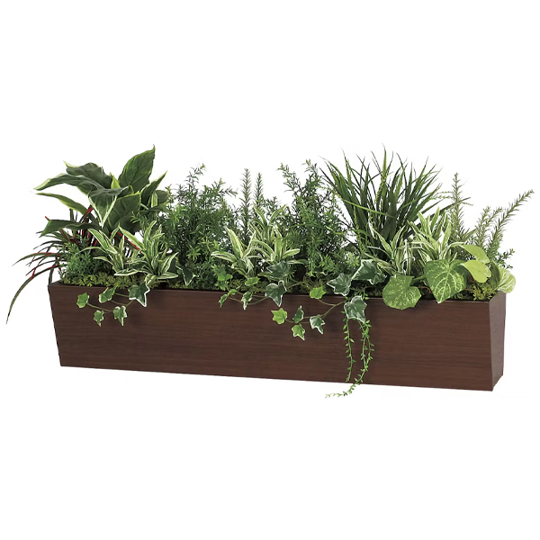 木目でインテリアに合わせやすいボックスタイプの大サイズ卓上ポット。 ポットの形状は下部が細くなっているので斜め台形です。 間仕切りとして、また置くだけで卓上の演出にも効果があります。