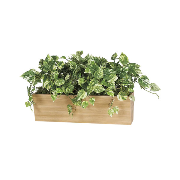 木目でインテリアに合わせやすいボックスタイプの大サイズ卓上ポット。 ポットの形状は下部が細くなっているので斜め台形です。 間仕切りとして、また置くだけで卓上の演出にも効果があります。