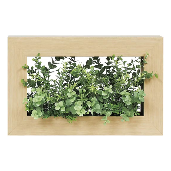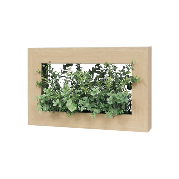 絵画の様に飾る壁掛けポット、長方形タイプ。グリーンを額縁に入ったアートパネル風にアレンジ。付属のフックで簡単に壁掛けできます。 ちょっとした空間にもワンポイントの演出をすることができます。 並べて使うと動きのあるディスプレイができます。 肉厚でボリューム感あるユーカリの葉からパワーがもらえます。ユーカリの花言葉は「思い出・再生・新生」。自分だけのお気に入りスペースへ。