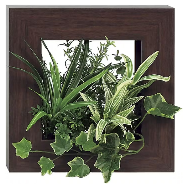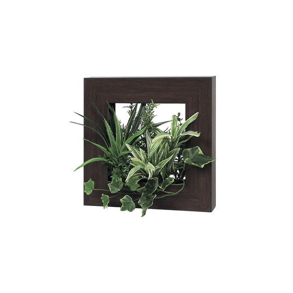 絵画の様に飾る壁掛けポット、スクエアタイプ。グリーンを額縁に入ったアートパネル風にアレンジ。付属のフックで簡単に壁掛けできます。 ちょっとした空間にもワンポイントの演出をすることができます。 並べて使うと動きのあるディスプレイができます。 溢れ出すような「寄せ植え風アレンジ」が特長です。