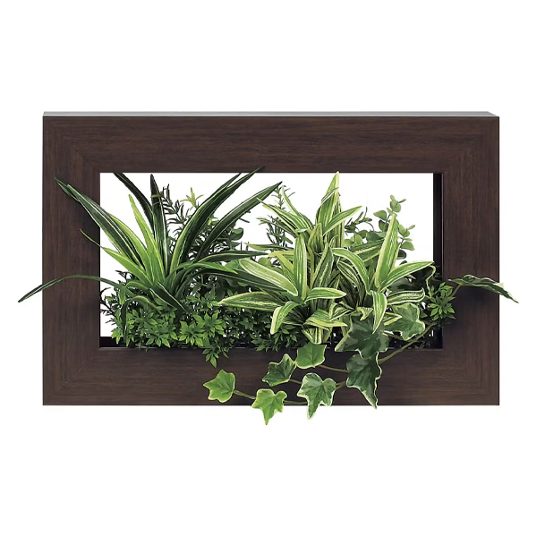 絵画の様に飾る壁掛けポット、長方形タイプ。グリーンを額縁に入ったアートパネル風にアレンジ。付属のフックで簡単に壁掛けできます。 ちょっとした空間にもワンポイントの演出をすることができます。 並べて使うと動きのあるディスプレイができます。 溢れ出すような「寄せ植え風アレンジ」が特長です。自分だけのお気に入り空間作りのアイテムにおすすめ。