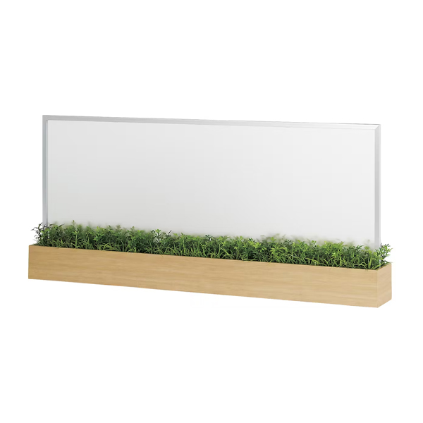 シンプルでスタンダードな卓上間仕切りポットです。 スモークタイプの艶消しアクリル板で圧迫感なく仕切れます。 薄型で脚元のシンプルなグリーンが目をなごませます。 並べて使うとデスクやテーブルの仕切りに使えます。