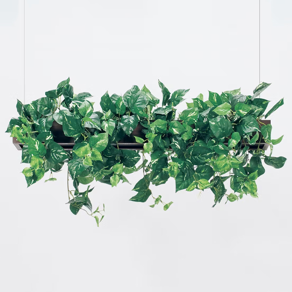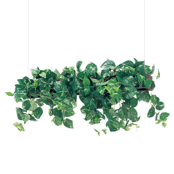 ワイヤーフックで吊り下げて使うワイド90cmのしだれポット。ポトスの花言葉は「華やかな明るさ」グリーン演出にピッタリの植物です。両側からしだれているタイプでフロアの天井から吊り下げにおすすめ。ダクトレールやピクチャーレール、やぐらブースに簡単に設置ができます。ポットに付いている金具にワイヤーフックを引掛けて吊るします。設置スペースの確保や動線を気にすることなく、空間を有効活用できます。目線の高さでしだれグリーンを楽しむことができ、立体感のある演出ができます。複数並べて使うと目隠しや区画作りとしても使えます。